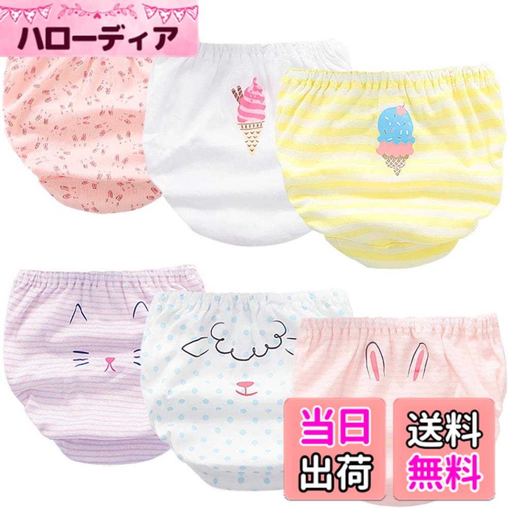 【送料無料】女児 ショーツ 6枚セット 綿100% 通気 下着 キッズ ベビー 女児キッズショーツ 無蛍光の100% 肌着 柔らかい 吸湿 快適 子供 幼稚園 水玉 風船 子犬 90 100 110 120 130 【OU.OU】 色:こひつじウサミンアイスクリ、サイズ:100