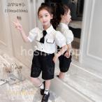 子供服 夏 スーツ フォーマル 上下セット キッズ 女の子 セットアップ 発表会 受験用 小学生 お祝い シャツ+パンツ+ベルト+蝶ネクタイ 半袖 ショーツ 4点セット
