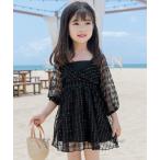 キッズ 水着 女の子 ワンピース セパレート 2点セット シースルー ラメ 着やすい 子供 ベビー ジュニア 黒 110cm 120cm 130cm 140cm 150cm 可愛い お洒落