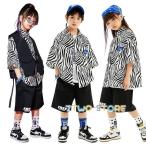 ゼブラ柄 ダンス衣装 キッズ ゆるシャツ 半袖 ショーツ 黒 キッズダンス衣装 セットアップ 子供服 ヒップホップ 男の子 女の子 パンツ 短パン ストリート系