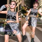 ダンス衣装 キッズ ステージ衣装 キラキラ スパンコール セットアップ HIPHOP ヒップホップ ジャズダンス 韓国 女の子 練習着 おしゃれ