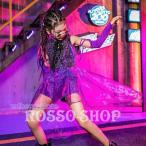 ダンス 衣装 キッズ 韓国 パープル キラキラ スパンコール ガールズ セットアップ ステージ衣装 女の子 ヒップホップ へそ出し おしゃれ 卒業式