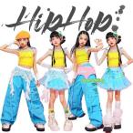 キッズ ダンス衣装 ティアードスカート カーゴパンツ スカート キャミソール ブルー ピンク セットアップ 子供服 ブルー ジャズ パンツ k-pop ヒップホップ 応援