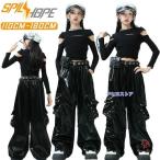 キッズダンス衣装 セットアップ ヒップホップ ファッション ガールズ ダンス衣装 トップス 迷彩パンツ ミリタリー 派手 K-POP 韓国 黒 カーキ 迷彩柄