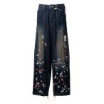 Maison MIHARA YASUHIRO ミハラヤスヒロ キッズ ステッカー プリント ベイカー デニムパンツ J16PT124 ブラック ワイドジーンズ ジーパン メンズ