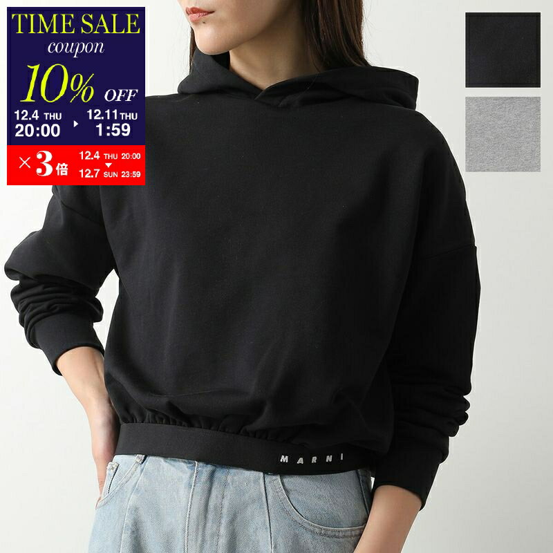 【10%OFFクーポン対象・12/4-20時~】MARNI KIDS マルニ キッズ パーカー M01552 M00V1 レディース ガールズ プルオーバー フーディー クロップド丈 スウェットシャツ ロゴバンド カラー2色【cp_ten】