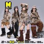 文化祭 土色 砂漠 キッズダンス衣装 セットアップ ヒップホップ 女の子 アシンメトリーデザイン ロンt 肩だし グラデーション パーカー ブラウン パンツ ブラッ