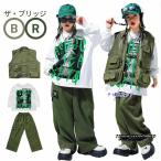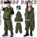 緑 カーキグリーン キッズ ダンス衣装 セットアップ ベスト 男の子 女の子 袖なし パーカー 半袖 ゆったり カジュアルシャツ トップス ロングパンツ サルエルパ