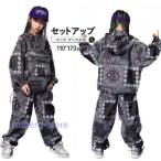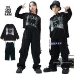 パーカー キッズダンス衣装 セットアップ ヒップホップ キッズ 衣装 韓国風 子供服 男の子 女の子 ストリート 長袖 黒 プリント カーゴパンツ 舞台 演出服 個性