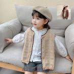 春秋冬 ニットベスト キッズニットベスト ジュニア 子供用セーター カジュアル 前開き 洗える 女の子 防寒 インナー ニットチョッキ