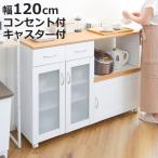 キッチンカウンター 幅120cm フレンチカントリー調 スライド棚 2口コンセント キャスター付 ( カップボード キッチン レンジ台 ワゴン 収納 )
