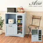 キッチンカウンター 家電収納 カントリー調 フレンチスタイル 幅75cm ( レンジ台 家電収納 食器棚 おしゃれ ブルー 水色 )
