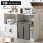 キッチンカウンター 伸縮 キッチンラック 炊飯器ラック レンジラック レンジ台 天板 キッチン収納 伸長式 伸縮式 ホワイト ナチュラル 台所収納 スライド棚 コンセント付き おしゃれ キャスター付き 北欧 カントリー 送料無料