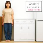 【爆買】キッチンカウンター カウンター下収納 幅90 奥行30 高さ85 薄型 鏡面仕上げ 光沢 艶有り おしゃれ ホワイト 北欧 モダン 日本製 完成品