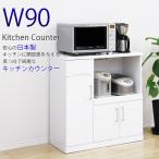 カップボード 食器棚 ロータイプ キッチンカウンター レンジボード レンジ台 キッチンボード 完成品 鏡面仕上げ 木製 幅90cm ホワイト 国産 艶あり 幅90 90幅