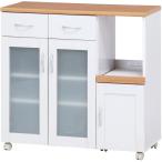 (タイムセール中) キッチンカウンター おしゃれ レンジボード 引き出しトレー キャスター付き 幅90×奥行39.5×高さ89cm ナチュラル×ホワイト