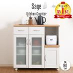 キッチンカウンター 60幅 カウンターテーブル 食器棚 引き戸 レンジ台 キッチンワゴン 収納 ガラス扉 引出し コンセント 北欧 シンプル 炊飯器 ラック スリム 一人暮らし ホワイト 白 ナチュラル サージュ Sage