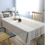 【並行輸入品】Leadtimes ストライプ テーブルクロス シンプル モダン マクラメ レースエッジ テーブルカバー お手入れ簡単 こぼれにく