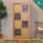食器棚 カップボード 国産 日本製 80cm Cタイプ ナチュラル 無垢アルダー材 ガラス戸 引き戸 北欧調 ダイニングボード 本棚 書棚 HP