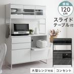 キッチン 食器棚 120 キッチンシェルフ 大容量 キッチンラック カウンター付き キャビネット 大型 コンセント 引き出し スライド棚 ガラス 脚付き