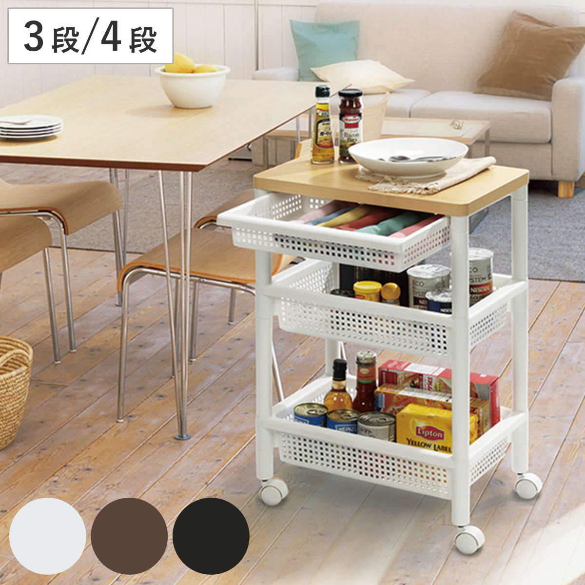 キッチンワゴン 天板 引き出し付き ワゴン 収納ラック 収納 マルチワゴン 3段 ラック 北欧風 隙間収納 バスケットトローリー キッチンストッカー おしゃれ収納棚