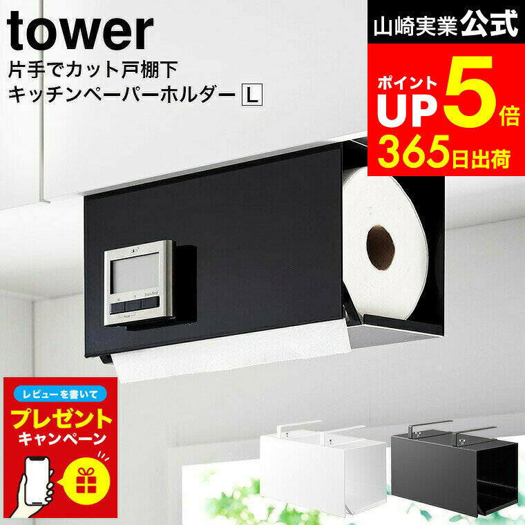 【レビュー特典】 [ 片手でカット戸棚下キッチンペーパーホルダー タワー カバー付き L ] 山崎実業 公式 tower ホワイト ブラック 3008 3009 / 大判対応 片手で切れる キッチンペーパーハンガー ペーパータオル 吊り戸棚 吊戸棚 キッチン 用品 JGS dej cpj 送料無料
