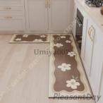 キッチンマット 洗える 廊下カーペット 滑り止め付 台所マット 低反発 ラグマット 防音 防ダニ 抗菌 防臭 ホットカーペット対応 手触り良い 絨毯 北欧風 花柄