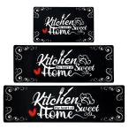 【並行輸入品】XLHOMO キッチンマット 床用 滑り止め 洗濯可能 キッチンラグ 3枚セット ブラック ファームハウス クッション 汚れ防止
