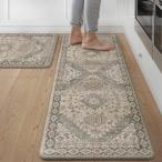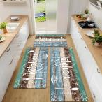 【並行輸入品】キッチンラグ2枚セット 滑り止めキッチンマット 床用 厚手 汚れ防止 ヴィンテージ キッチン フロアマット ランナー カーペット