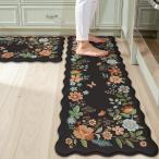 【並行輸入品】GENIMO キッチンマット 床用 キッチンラグ 滑り止め 洗濯可能 防水 クッション 抗疲労マット フローラル ランナー ラグ