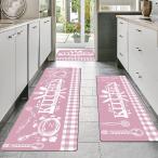 【並行輸入品】床用ピンクキッチンマット、滑り止めクッションキッチンランナーラグ3点、グリッドデザイン、防水快適マット ファームハウス シェフ ラ