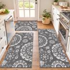 【並行輸入品】YAMAZIOT キッチンラグ 3枚セット 滑り止めキッチンマット 床用 洗濯可能 キッチンランナー ラグ ファームハウス フロー