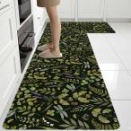 【並行輸入品】キッチンフロア用グリーンボタニカルラグ、キッチンフロア用植物抗疲労マット、滑り止め、ラバーキッチンマット、2ピース、シンクランドリ