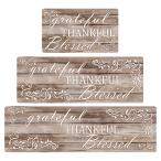 【並行輸入品】ブラウンサンクフルキッチンマット床用、滑り止めクッションキッチンランナーラグ3点、グリッドデザイン、防水快適マットファームハウスシ