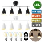 シーリングライト おしゃれ 4灯 E26口金 消費電力6W 60W形相当 角度調節 LED電球付き 調光 調色 リモコン付き 照明器具 天井 引掛け式 ダクトレール 省エネ