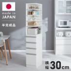 【2/21&2/22 20%OFF】隙間収納 幅30cm おしゃれ 棚 開き戸 引出し スリム 白 鏡面 コンパクト すき間ワゴン 食器棚 ハイタイプ 北欧家具