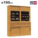 クラシオ RS 150 食器棚 幅149.5cm 奥行48cm 高さ201.5cm 完成品 ハイタイプ キッチン 収納 棚 キャビネット キッチンボード キッチンラック ダイニングボード オープン収納 レンジボード トースター 電子レンジ台 大容量 ラック 引き戸 大川家具 日本製 開梱 設置 送料 無料