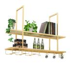 【並行輸入品】ワインラック天井ワインラック、バー、レストラン、ワイングラスラック、ホーム2層工業用 無垢材天井装飾棚 多機能レストランキッチン収