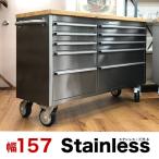 ツールキャビネット ステンレス 天然木 ステンレスワゴンW157 キッチンキャビネット キーロック付き 収納力 棚 収納 戸棚 幅157cm キッチンカウンター