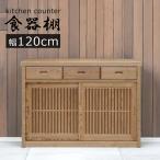 キッチンカウンター 収納 キッチン収納 幅120 間仕切り おしゃれ 完成品 食器棚 レンジ台 120cm幅 日本製 安い 引き戸 ブラウン