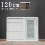キッチンカウンター 食器棚 収納 完成品 キッチン収納 キッチンボード 幅120 レンジ台 おしゃれ ロータイプ 引き戸 日本製 フルオープンレール 国産 白