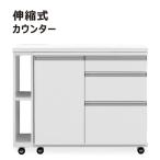 【10/15限定 ポイント10倍】キッチンカウンター 伸縮 キッチン収納 幅110cm 幅160cm 完成品 伸長 キャスター 鏡面 白 モダン