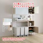 ゴミ箱上レンジラック 収納 W136.4×D42.7×H182.7cm ホワイトガラス扉 収納 食器棚 スリム おしゃれ キッチン