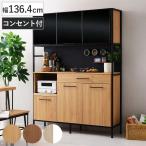 食器棚 幅136cm 2口コンセント付き マグネット収納 スライド棚 可動棚 ( 木目調 引き出し 収納 家電収納 キッチン収納 作業台 マグネットパネル )