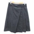 キャシャレル cacharel ラップスカート プリーツス ストライプ ウール 36 S チャコールグレー 黒 ブラック /YK レディース