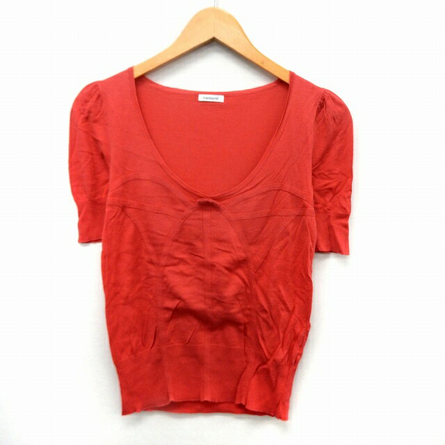 【中古】キャシャレル cacharel カットソー Tシャツ 半袖 Uネック シンプル 綿 コットン 1 レッド /ST39 レディース 【ベクトル 古着】 200625 ブランド古着ベクトルプレミアム店