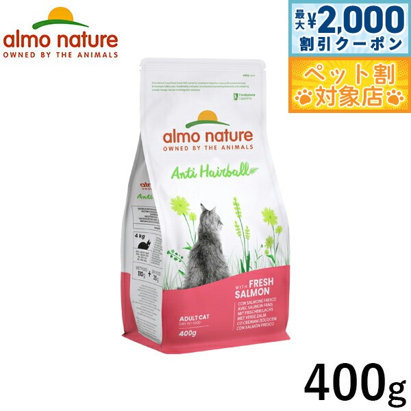 【最大2000円OFFクーポン!&店内ポイント最大62倍!本日限定!】アルモネイチャー キャットフード ファンクショナルドライフード 成猫用 ヘアボールコントロール フレッシュサーモン 400g 猫 ドライフード 総合栄養食 全猫種 毛玉ケア用