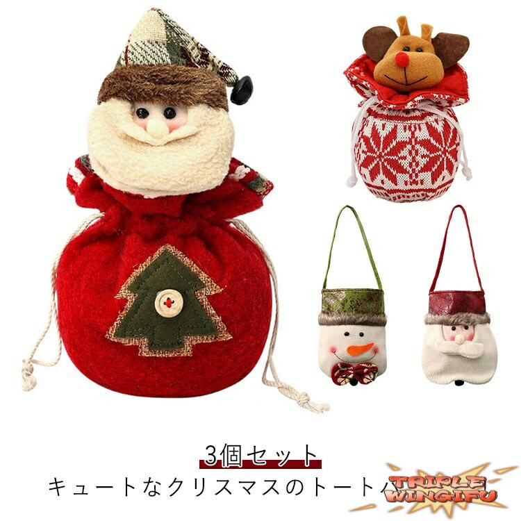 【全品2点で5%OFF】キャディーバッグ クリスマス クリスマス お菓子バッグ 3個セット ラッピング袋 クリスマス飾り ギフトバッグ 小物いれ お菓子入れ キャラクター サンタ トナカイ 雪だるま