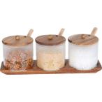 ガラスキャニスター 茶入 スプーン付 キャニスター 木製蓋付き キャニスター 木の蓋 パッキン コーヒー豆 保存容器 2個セット 密封ビン 北欧 調味