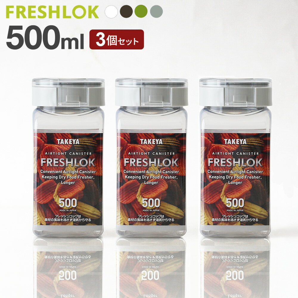 フレッシュロック 角型 800ml 3個セット 白/緑/茶/グレー | 保存容器 密閉 プラスチック おしゃれ 軽い キャニスター 便利 キッチン 収